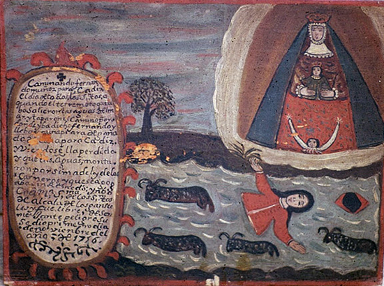 Ofrenda de un pastor a la virgen de los Ángeles de Alcalá de los Gazules (Cádiz) por haberle salvado del maremoto cuando se encontraba con su ganado.
