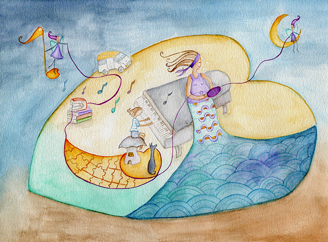 En 2017 comencé a compartir las acuarelas de mis cuadernos de viajes en mi blog y en las Redes Sociales,… y de casualidad acabé en el mundo de la ilustración, desde entonces navego y he realizado algunos trabajos como estos: